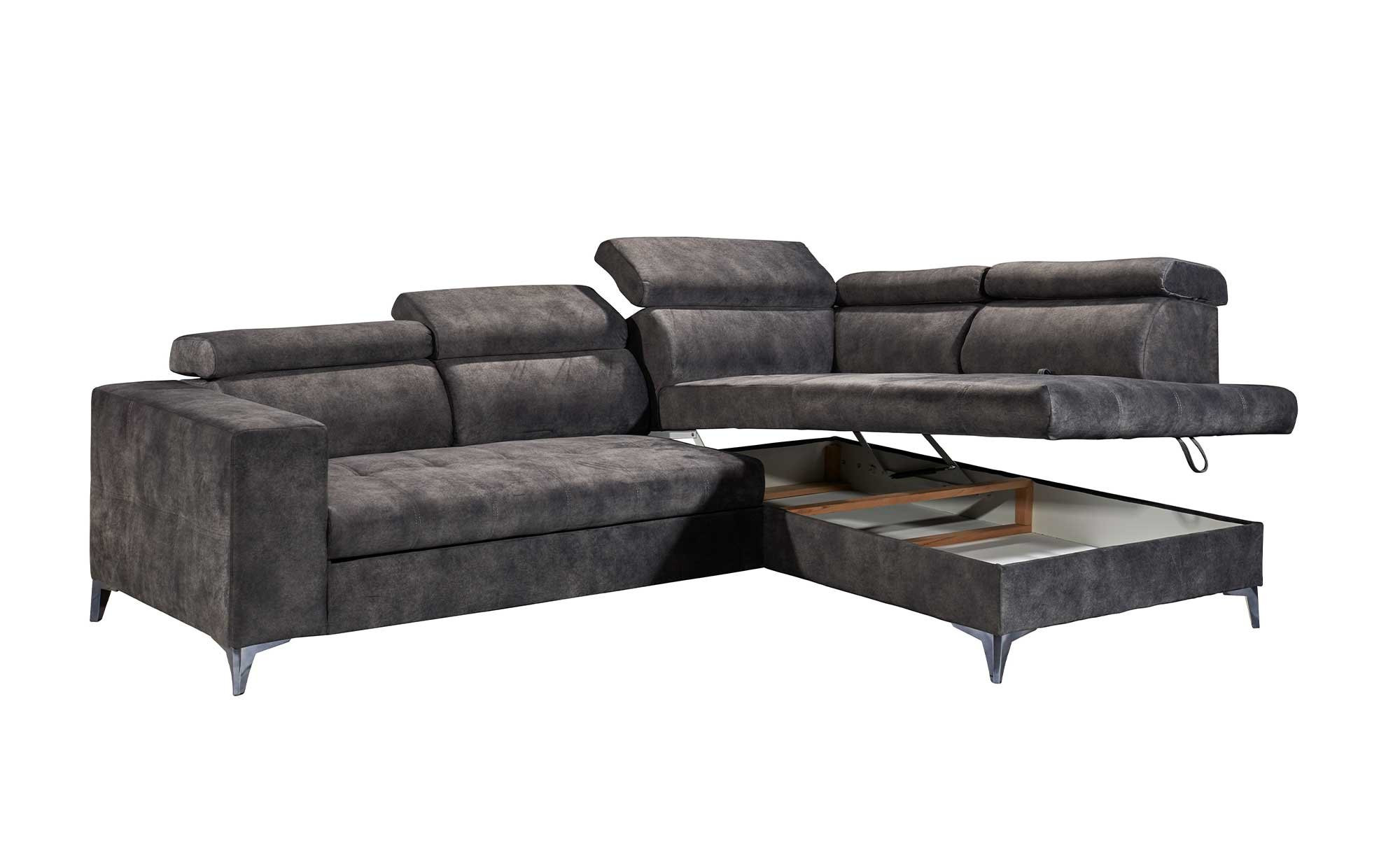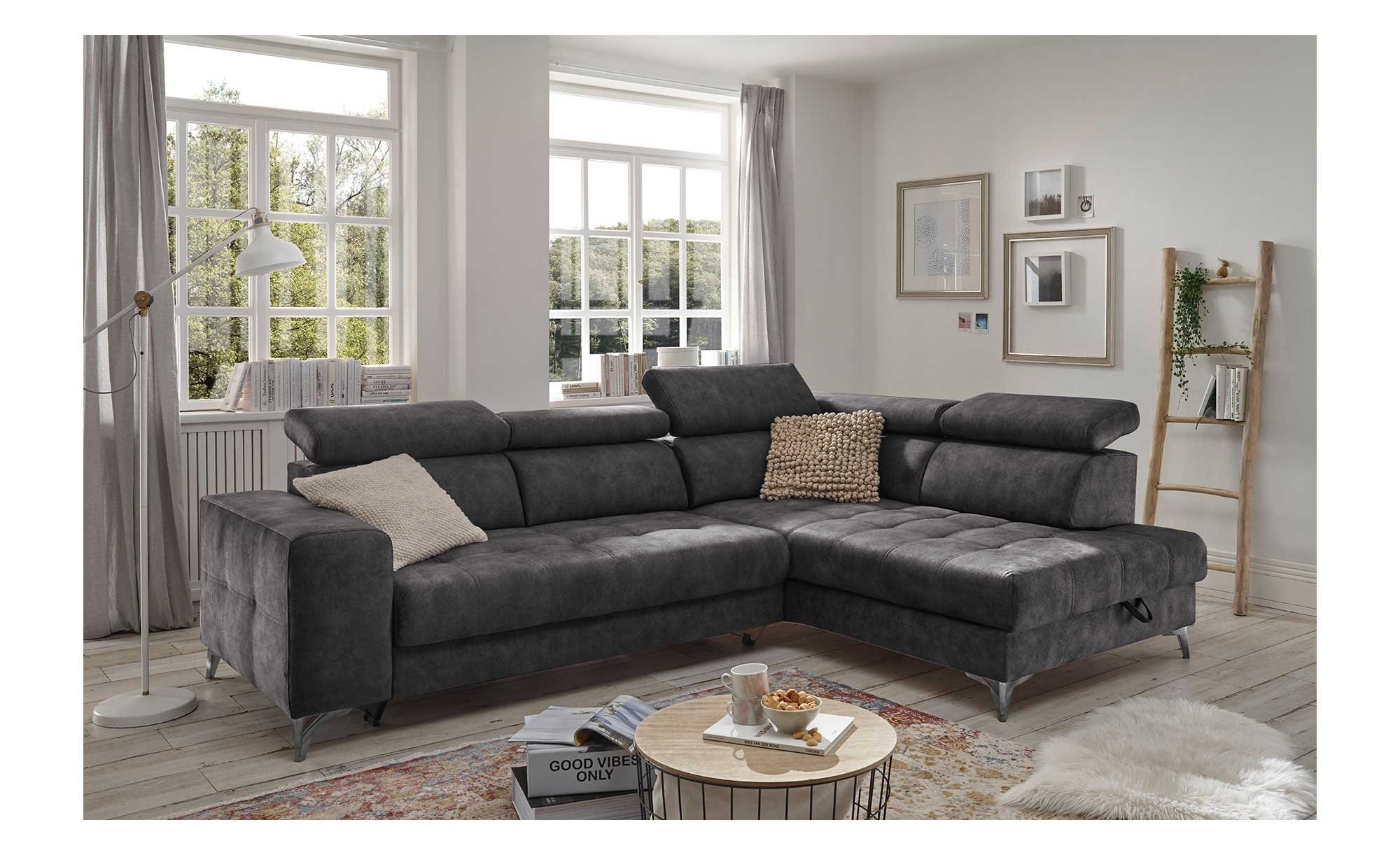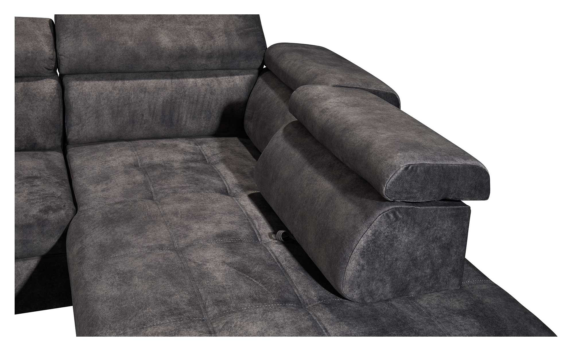 Absolut individuellen Komfort versprechen die fünf unabhängig voneinander einstellbaren Kopfteile. Zudem wird es auf dem mittelfesten Sitz dank einer Schaumstoffpolsterung besonders behaglich. In der Unterkonstruktion gibt es zusätzlich eine Nosagunterfederung. Ein weiterer Vorzug der ca. 282 x 102 x 198 cm großen Wohnlandschaft ist ihre elektrische Sitztiefenverstellung. Auch das Platzangebot des Bettkastens in der Ottomane weiß zu überzeugen.