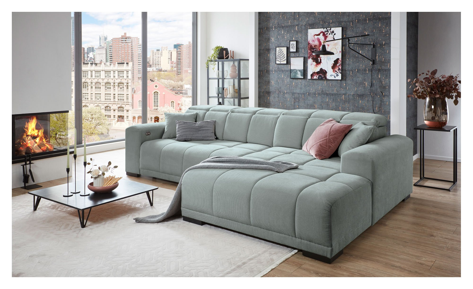 Im Sitz findet sich eine Polsterung aus Polyätherschaum, die in der Unterkonstruktion durch eine Nosagunterfederung verstärkt wird. Zudem begeistert die elektrische XXL-Sitztiefenverstellung des rechtsseitigen Artikels, mit der sich eine ca. 128 x 245 cm große Liegefläche realisieren lässt.