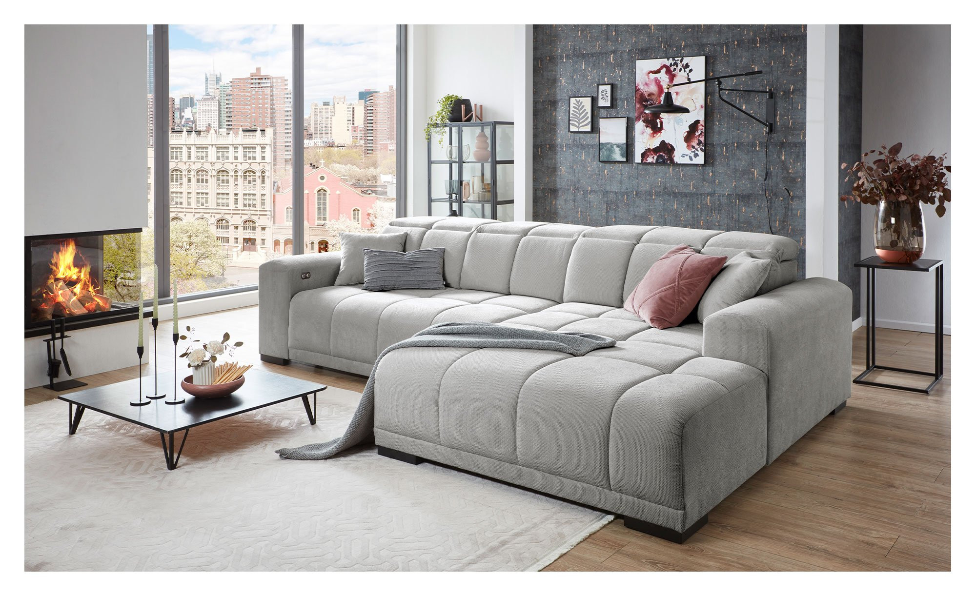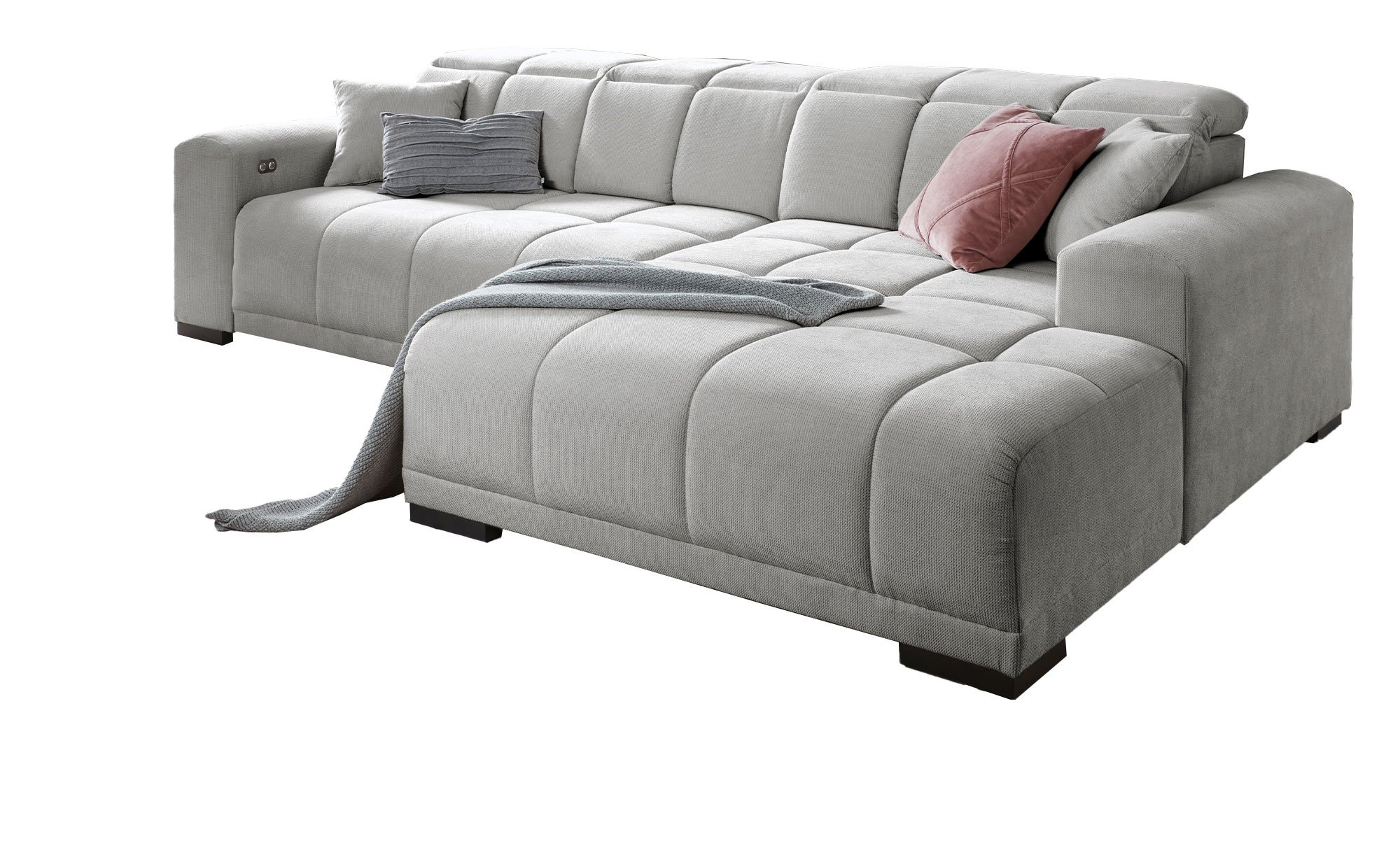 Im ca. 43 cm hohen sowie ca. 68 cm tiefen Sitz des rechtsseitig ausgerichteten Sofas dürfen Sie sich auf eine bequeme Polsterung aus Polyätherschaum freuen. Zudem gibt es in der Unterkonstruktion zusätzlich eine Nosagunterfederung. Mithilfe der integrierten elektrischen XXL-Sitztiefenverstellung stellen Sie den Artikel Ihren Wünschen entsprechend ein. Wie wäre es z. B. mit einer ca. 128 x 245 cm großen Liegefläche?