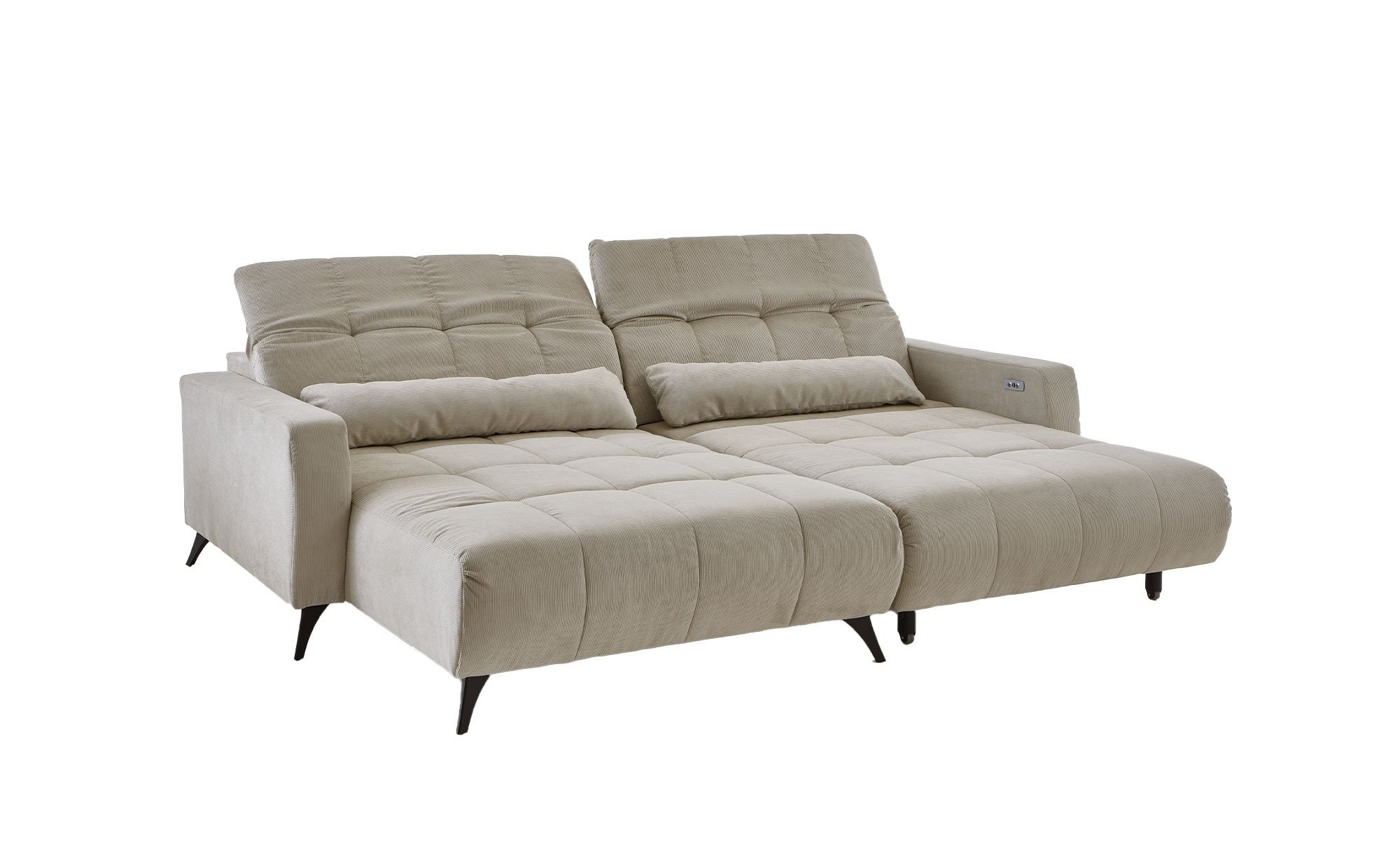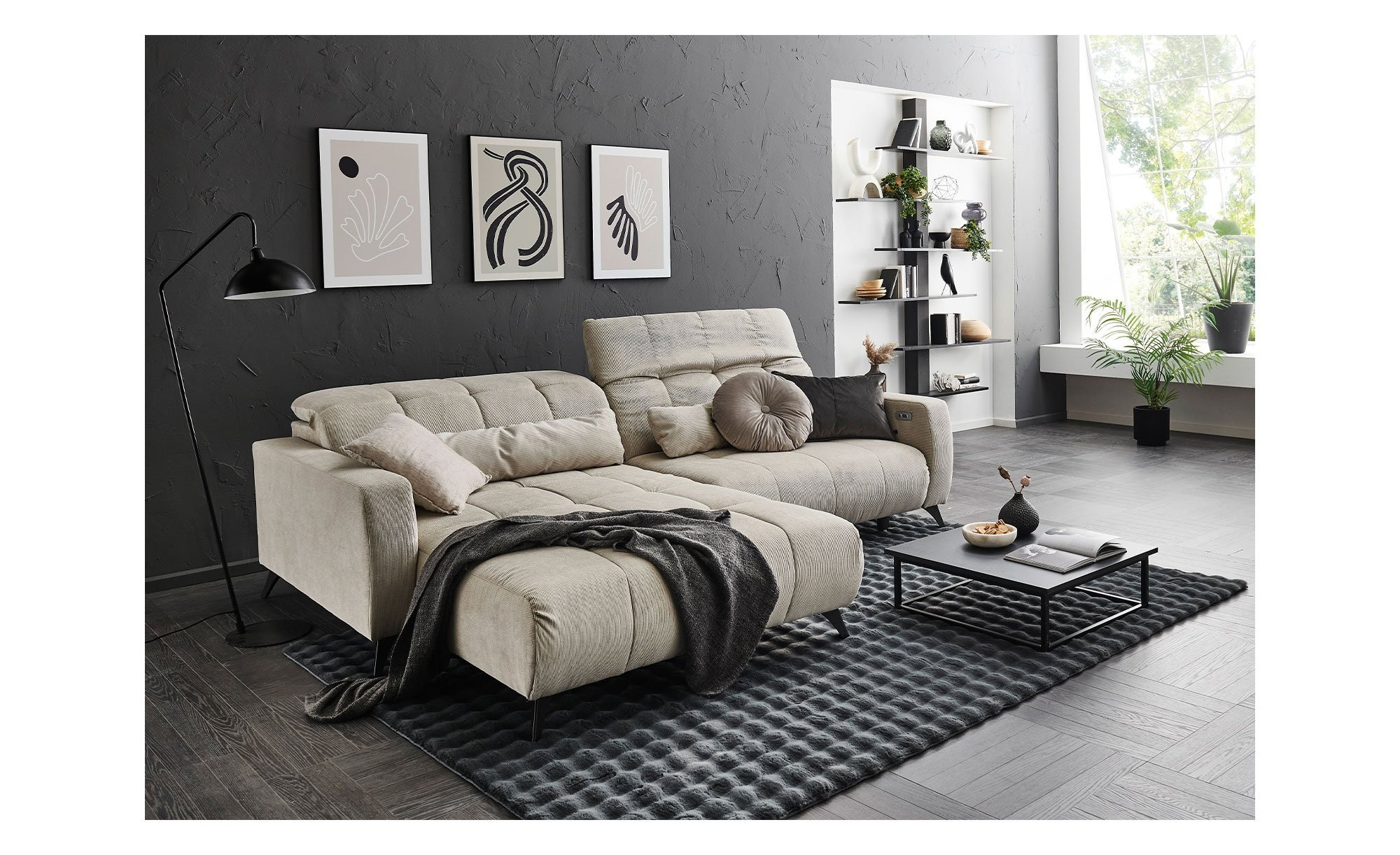 Mit einem ca. 277 cm langen rechten und einem ca. 203 cm langen linken Schenkel bietet der Artikel großzügige Sitzflächen. Für erstklassigen Komfort sorgt eine Nosagunterfederung in Kombination mit einer Schaumstoffpolsterung. Das Highlight: eine elektrische XXXL-Sitztiefenverstellung sowie manuell verstellbare Kopfteile am ca. 108 cm hohen Rücken – so richten Sie Ihre Wohlfühlzone ganz nach Wunsch ein.
