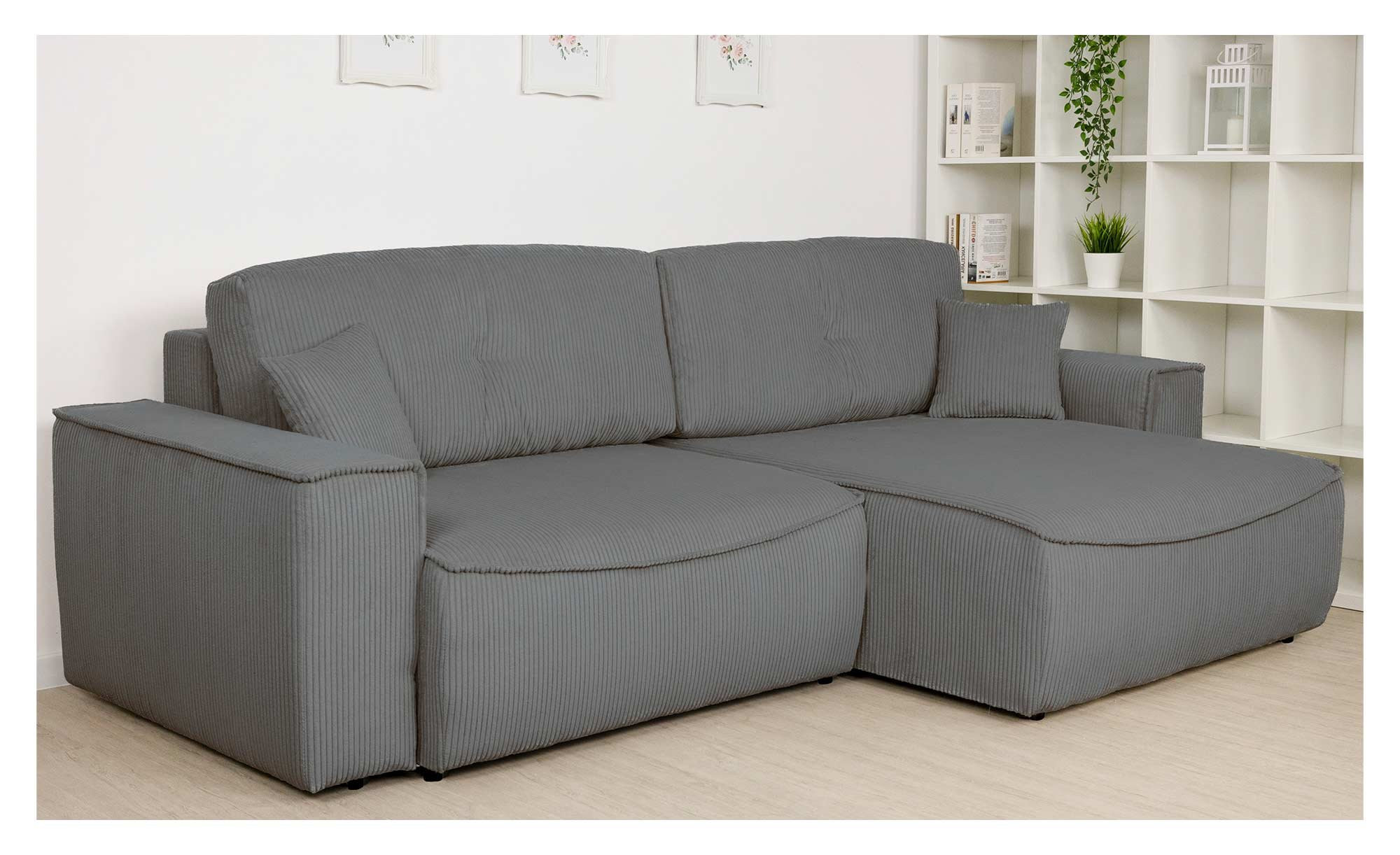 Das Sofa ist universell montierbar, seine Ottomane kann also wahlweise rechts oder links angebracht werden.