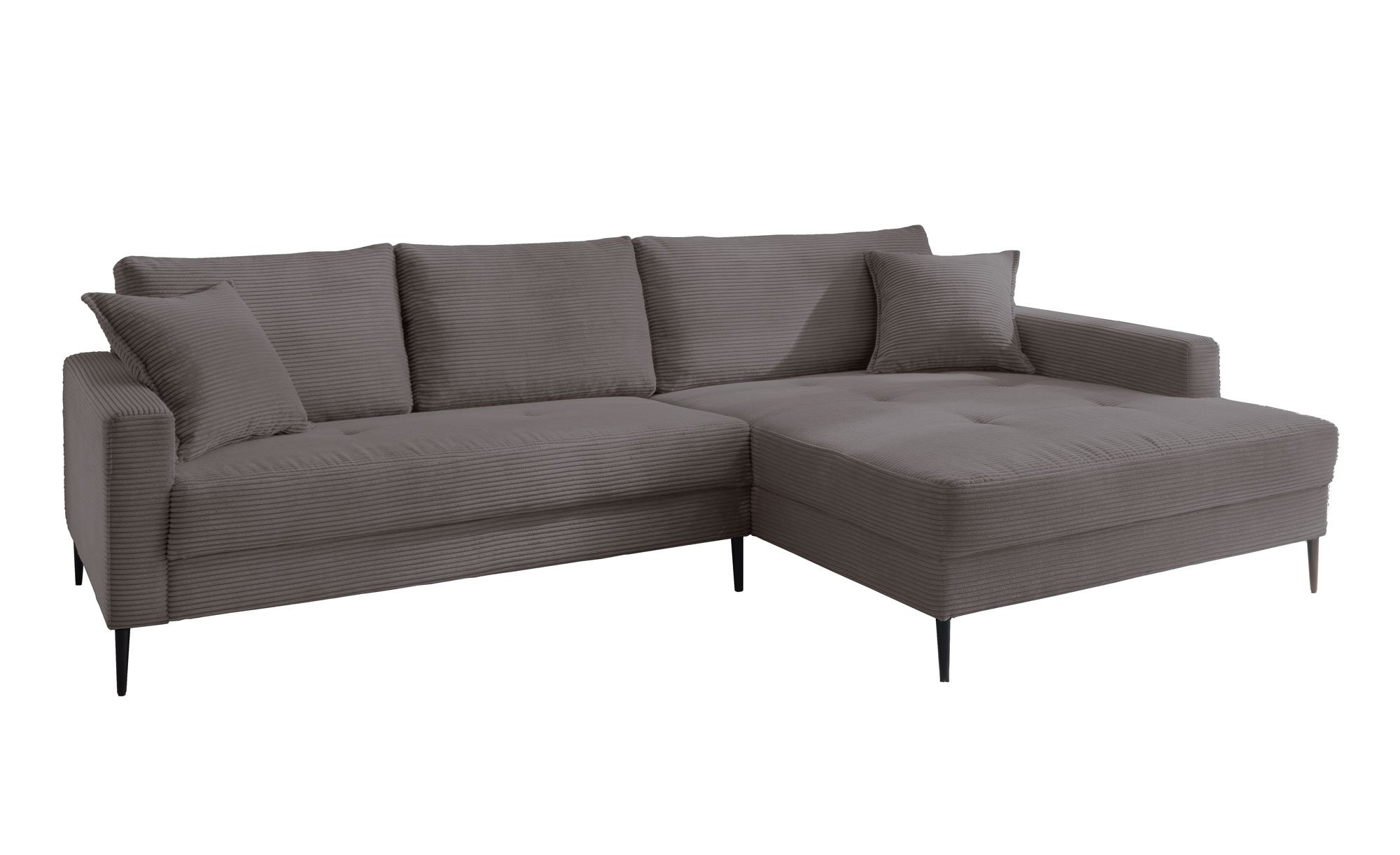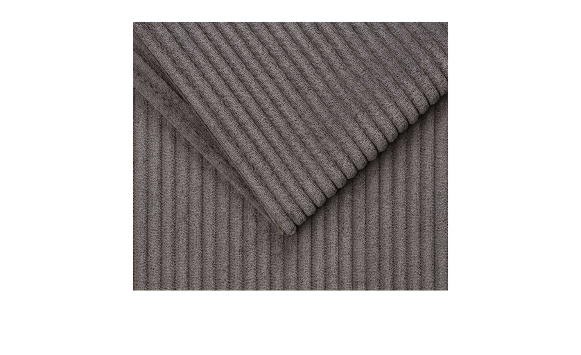 Das Möbelstück punktet mit einem Cord-Bezug in der Farbe Ash, der angenehm weich ist und gleichzeitig strapazierfähige Eigenschaften aufweist. Dank des durchgehend bezogenen Rückens haben Sie maximale Freiheit bei der Platzierung. Filigrane, ca. 15 cm hohe Metallfüße in Schwarz ergänzen das moderne Design.